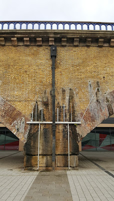 The main spans have stone piers and springing stones, as well as stone cornices and keystones, all topped with the attractive cast iron balustrade. However, the main thing that impresses me about this viaduct is the shear boldness and depth of the main arches. I’m no expert, but these look to have been very ambitious in brickwork at a time when many large span arches would still have been in stone masonry.The bridge has lasted well, and following the closure of the railway in the 1960s, it was revived as part of the Docklands Light Railway. As can be seen in the photographs, some of the piers have been festooned with small pipework, which I assume to be an ad-hoc attempt to direct water seepage in the piers to a suitable drainage system.